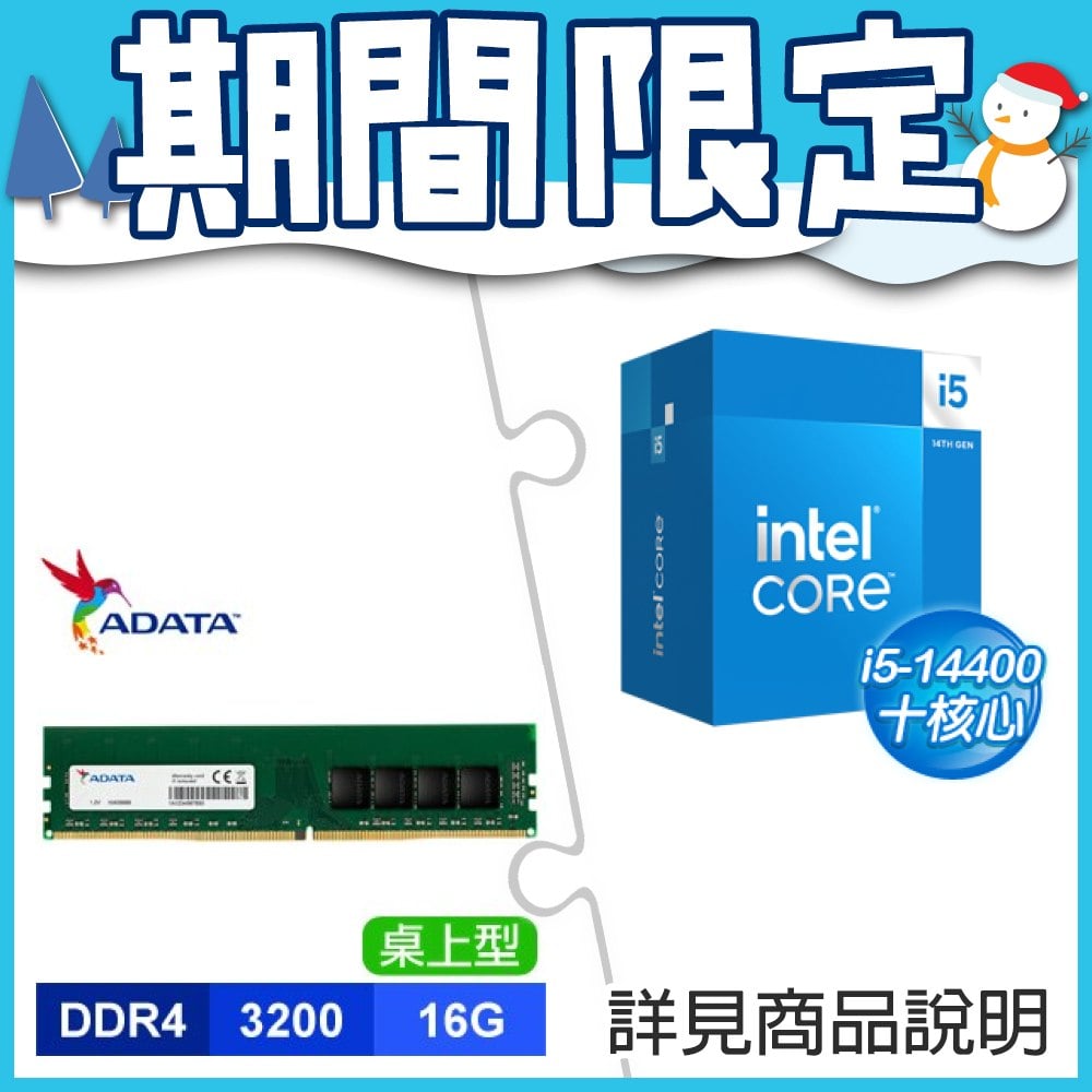 ☆期間限定★ i5-14400+威剛 DDR4-3200 16G 記憶體