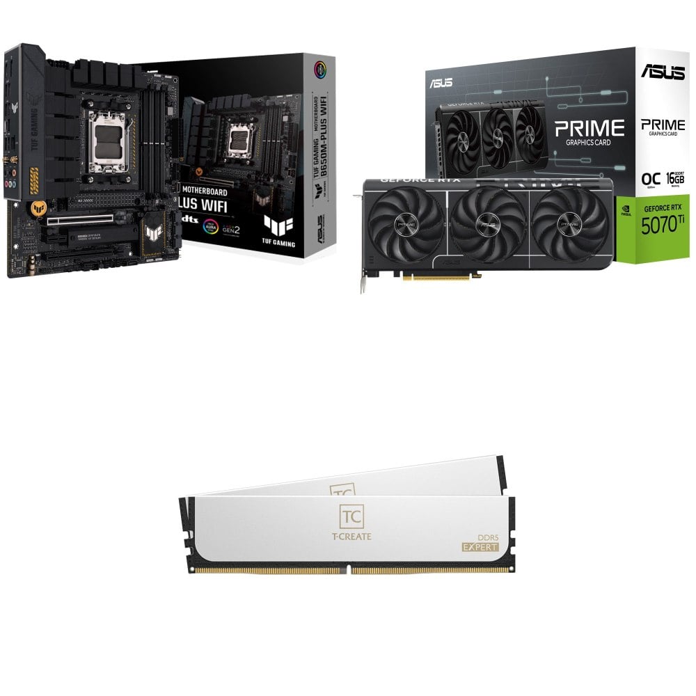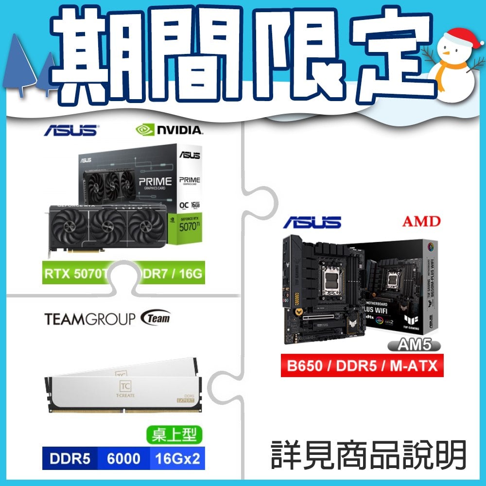 ☆期間限定★ 華碩 TUF GAMING B650M-PLUS WIFI M-ATX主機板+華碩 PRIME-RTX5070TI-O16G 顯示卡+TEAM 十銓T-CREATE EXPERT D5 6000 16G*2白 記憶體