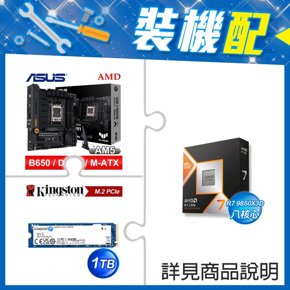 ☆裝機配★ AMD R7 9850X3D+華碩 TUF GAMING B650M-E WIFI D5 MATX主機板+金士頓 NV3 1TB M.2 PCIe SSD