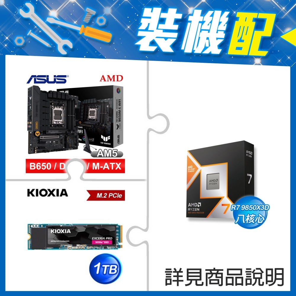 ☆裝機配★ AMD R7 9850X3D+華碩 TUF GAMING B650M-E WIFI D5 MATX主機板+鎧俠 EXCERIA PRO 1TB PCIe Gen4x4 SSD
