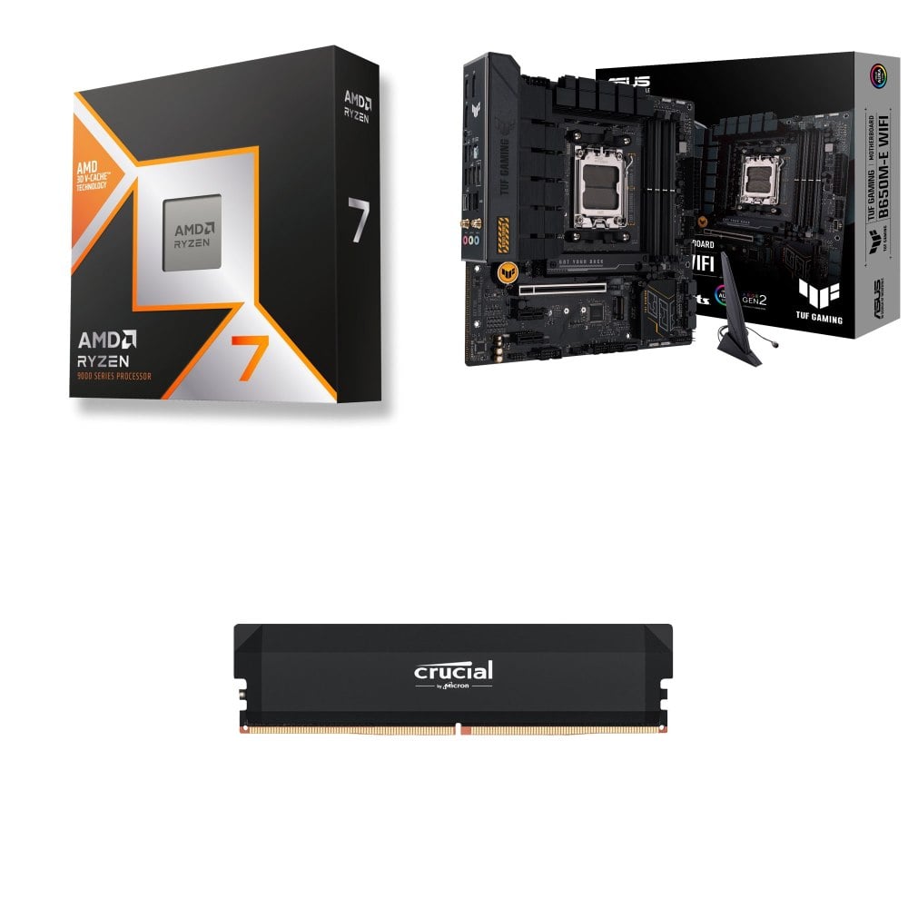 ☆裝機配★ AMD R7 9850X3D+華碩 TUF GAMING B650M-E WIFI D5 MATX主機板+美光 Crucial PRO DDR5-6000 16G 記憶體