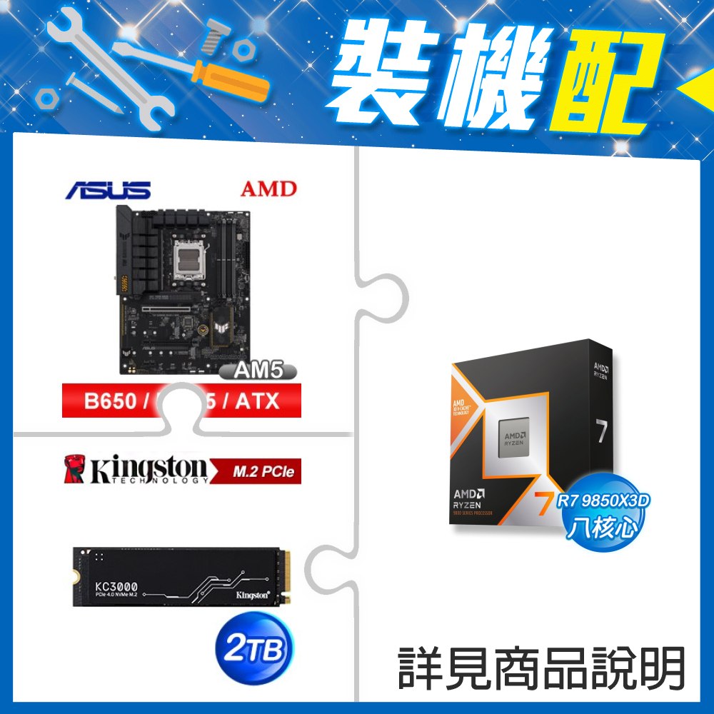 ☆裝機配★ AMD R7 9850X3D+華碩 TUF GAMING B650-E WIFI ATX主機板+金士頓 KC3000 2TB PCIe 4.0 NVMe M.2 SSD