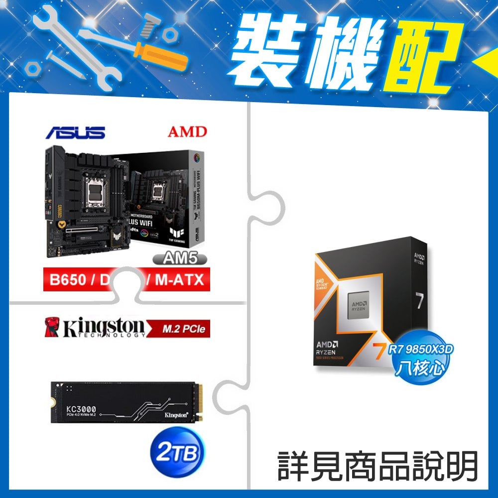 ☆裝機配★ AMD R7 9850X3D+華碩 TUF GAMING B650M-PLUS WIFI M-ATX主機板+金士頓 KC3000 2TB PCIe 4.0 NVMe M.2 SSD