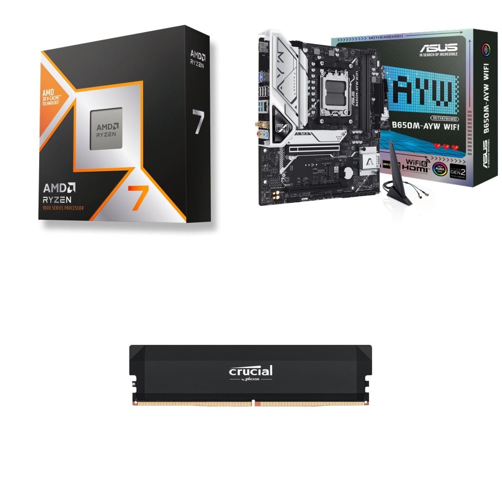 ☆裝機配★ AMD R7 9850X3D+華碩 B650M-AYW WIFI MATX主機板+美光 Crucial PRO DDR5-6000 16G 記憶體