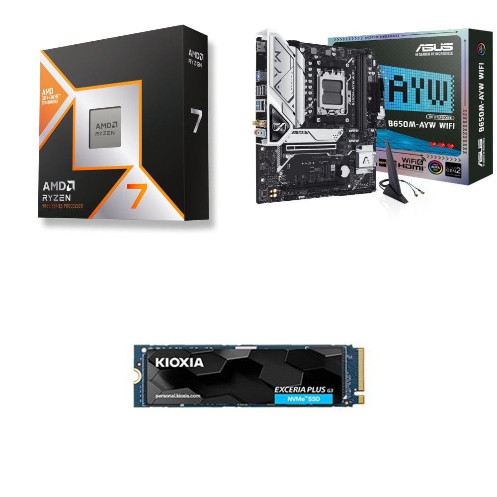 ☆裝機配★ AMD R9 9950X3D+華碩 B650M-AYW WIFI MATX主機板+鎧俠 EXCERIA PLUS G3 2TB PCIe Gen4x4 SSD
