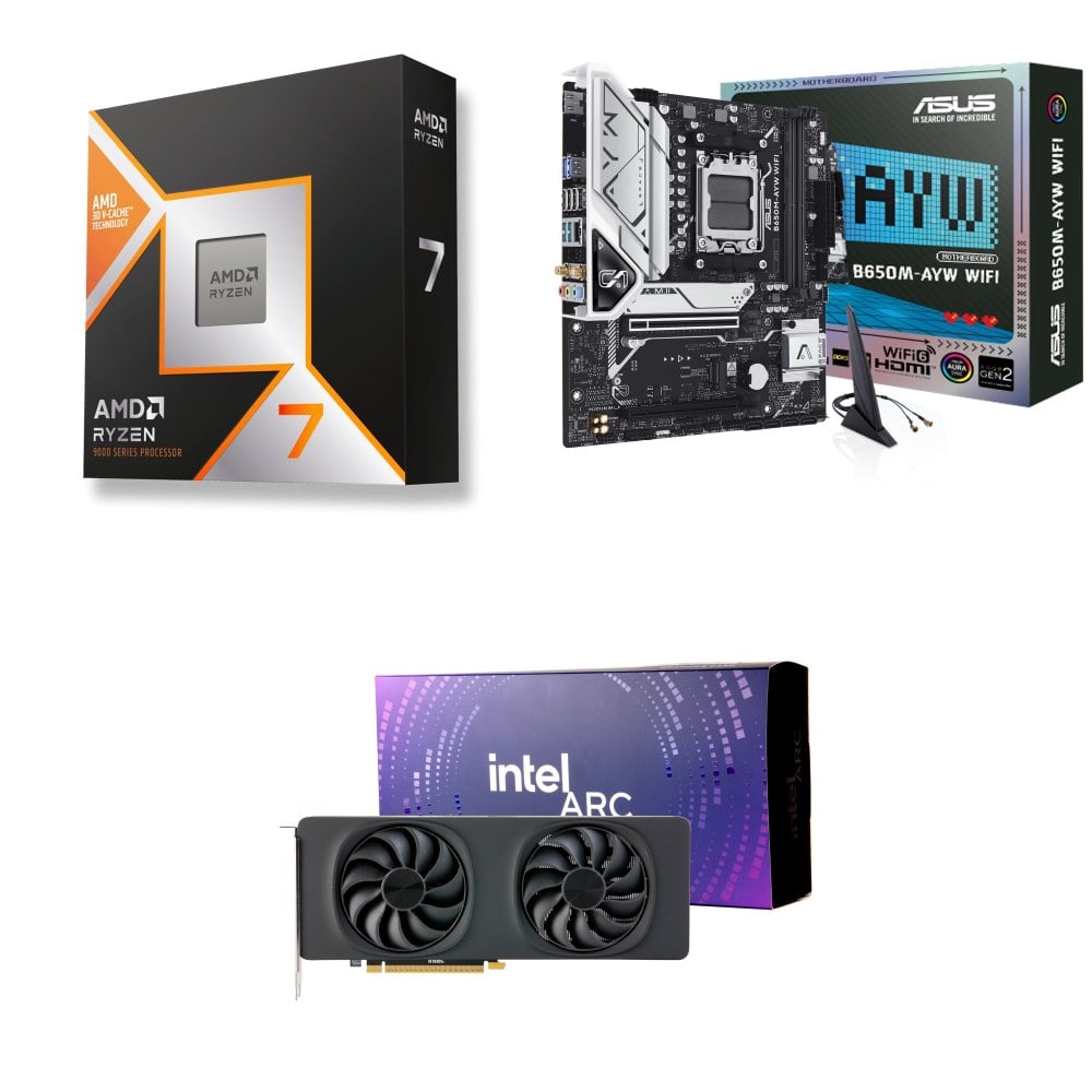 ☆裝機配★ AMD R7 9850X3D+華碩 B650M-AYW WIFI MATX主機板+Intel Arc B580 12G 20 Core 顯示卡