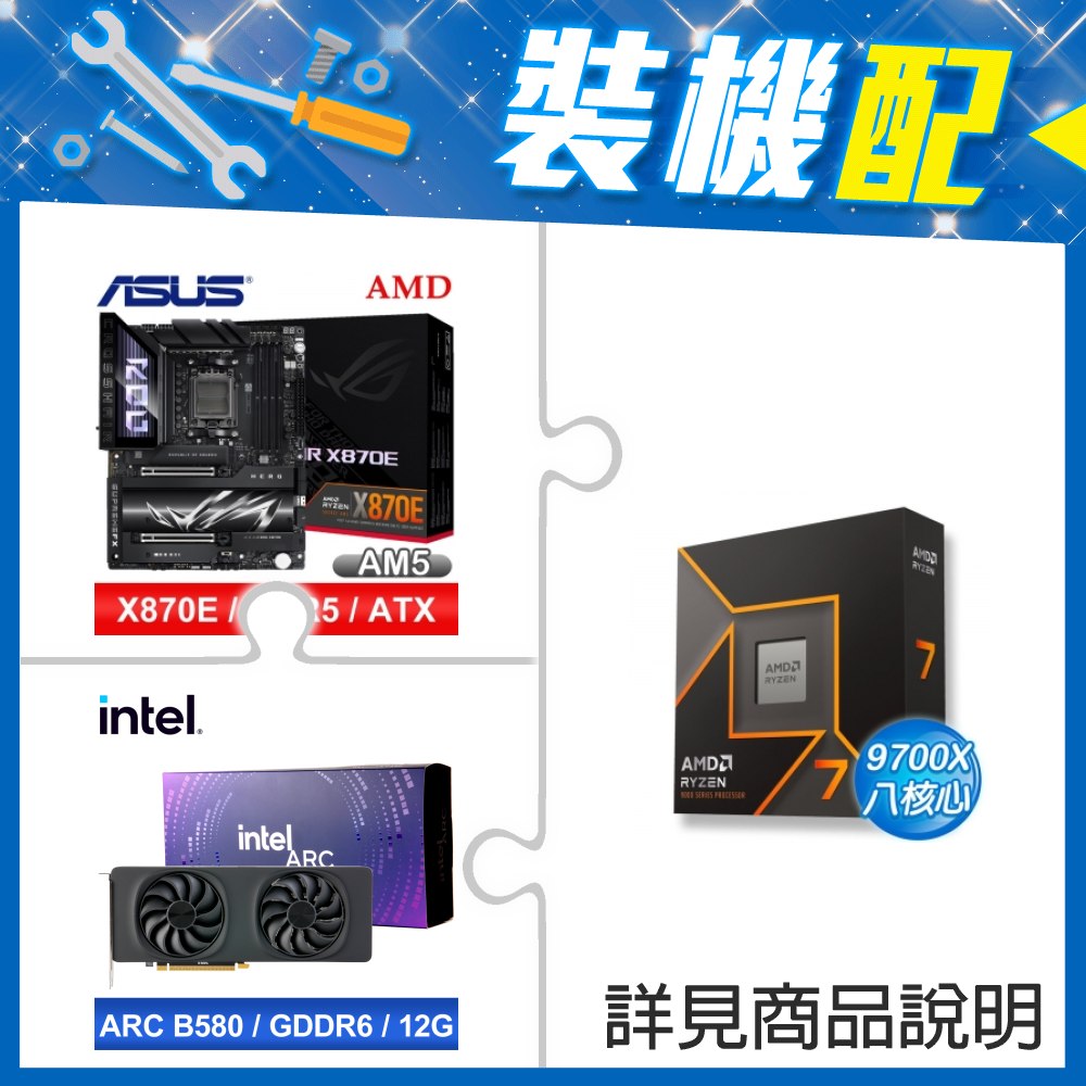 ☆裝機配★ AMD R7 9700X+華碩 ROG CROSSHAIR X870E HERO ATX主機板+Intel Arc B580 12G 20 Core 顯示卡
