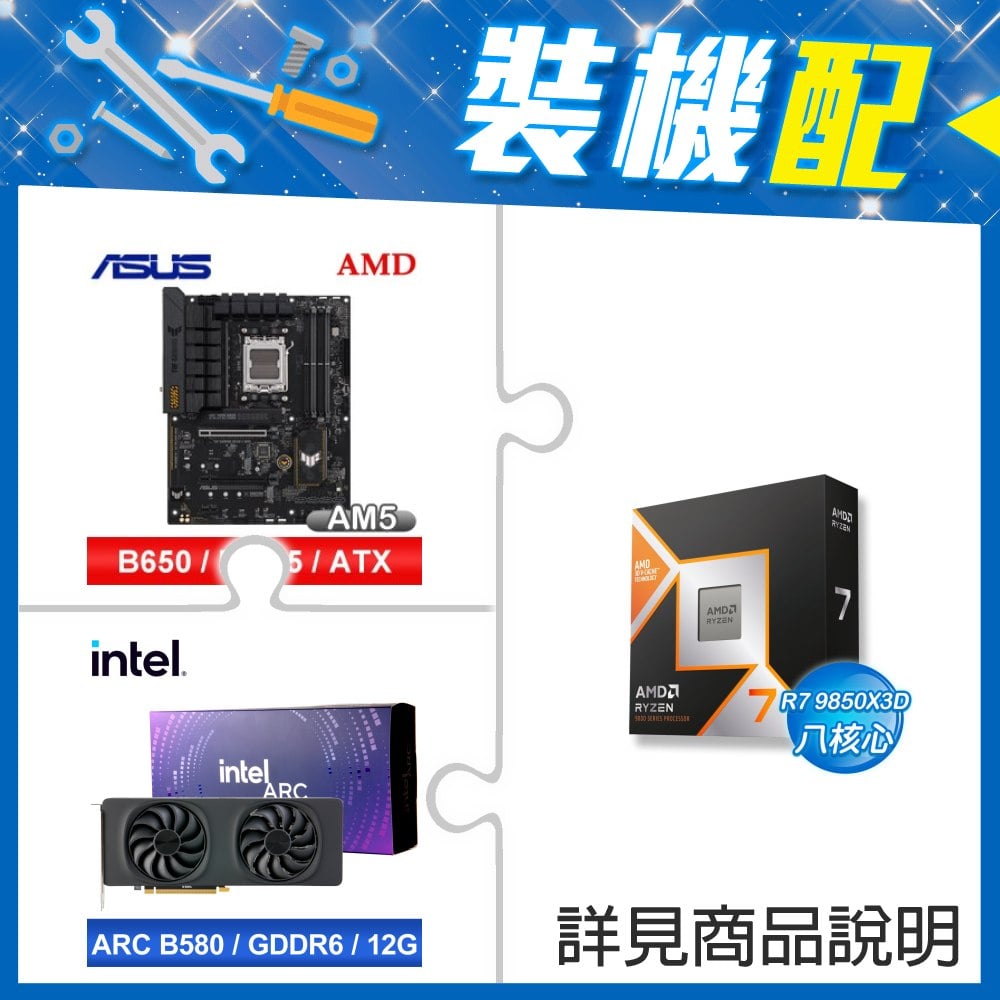 ☆裝機配★ AMD R7 9850X3D+華碩 TUF GAMING B650-E WIFI ATX主機板+Intel Arc B580 12G 20 Core 顯示卡