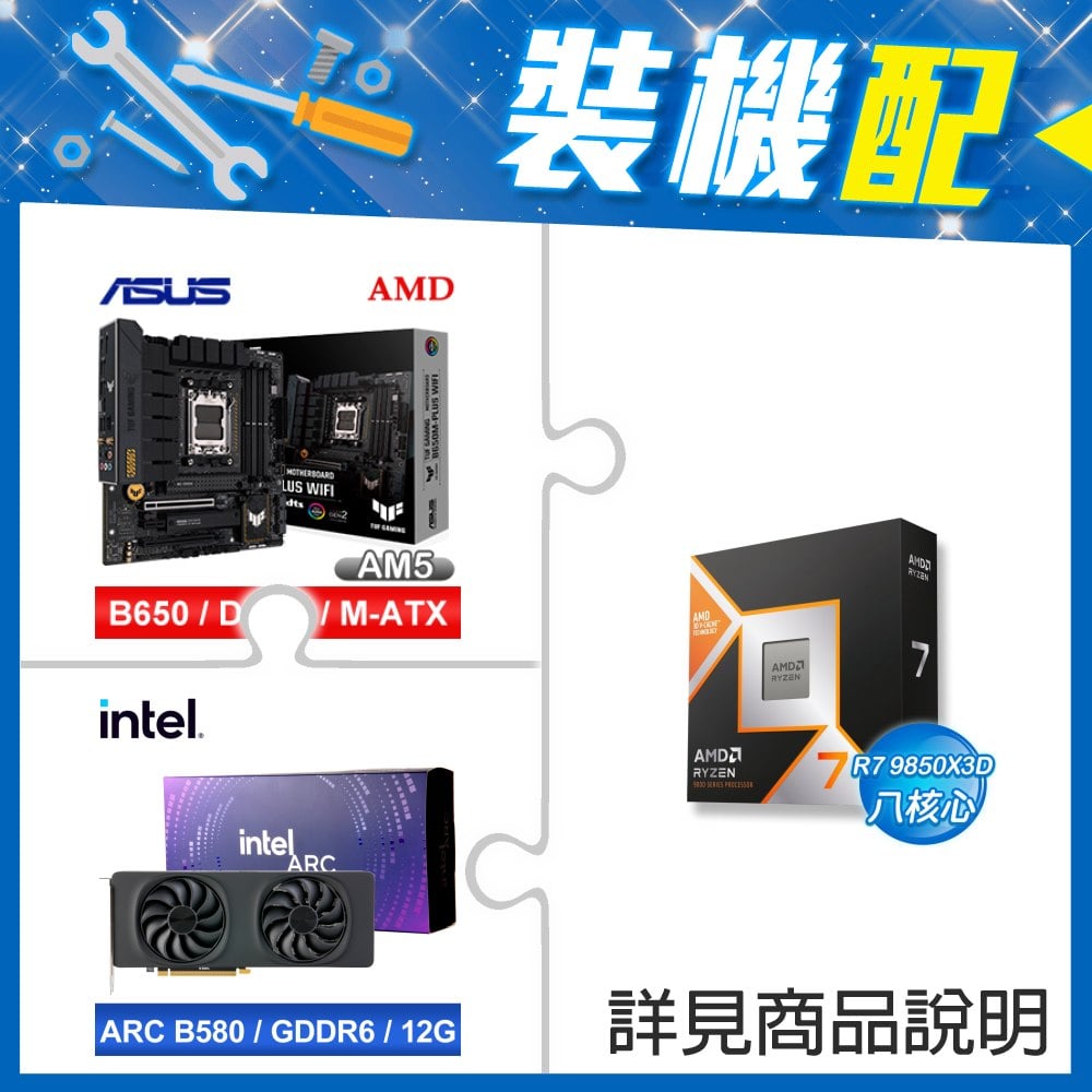 ☆裝機配★ AMD R7 9850X3D+華碩 TUF GAMING B650M-PLUS WIFI M-ATX主機板+Intel Arc B580 12G 20 Core 顯示卡