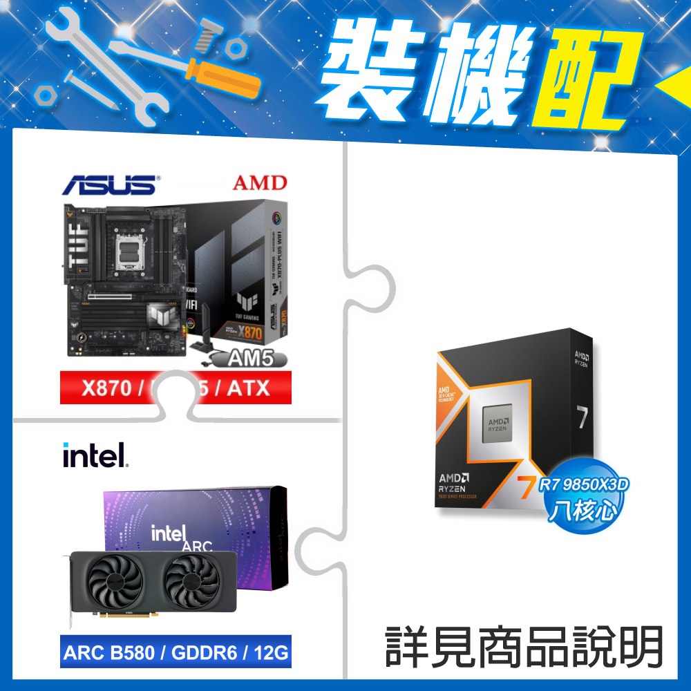 ☆裝機配★ AMD R7 9850X3D+華碩 TUF GAMING X870-PLUS WIFI ATX主機板+Intel Arc B580 12G 20 Core 顯示卡