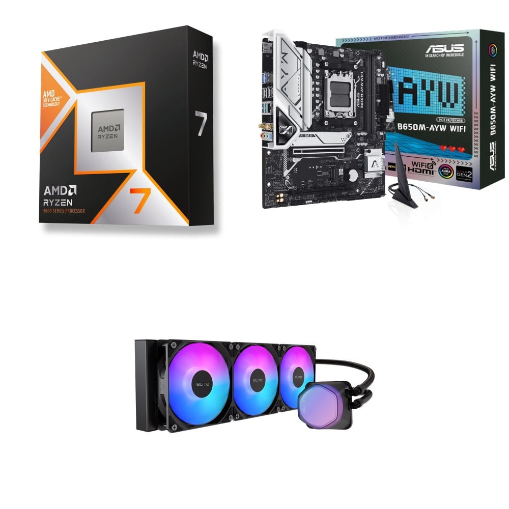 ☆裝機配★ AMD R7 9850X3D+華碩 B650M-AYW WIFI MATX主機板+酷碼 EliteLiquid 360 ARGB 水冷散熱器