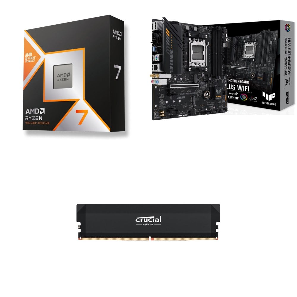 ☆裝機配★ AMD R7 9850X3D+華碩 TUF GAMING A620M-PLUS WIFI MATX主機板+美光 Crucial PRO DDR5-6000 16G 記憶體