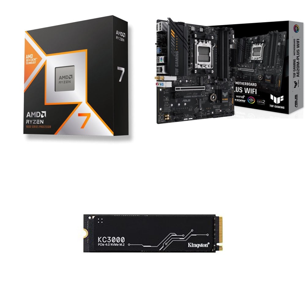 ☆裝機配★ AMD R7 9850X3D+華碩 TUF GAMING A620M-PLUS WIFI MATX主機板+金士頓 KC3000 2TB PCIe 4.0 NVMe M.2 SSD