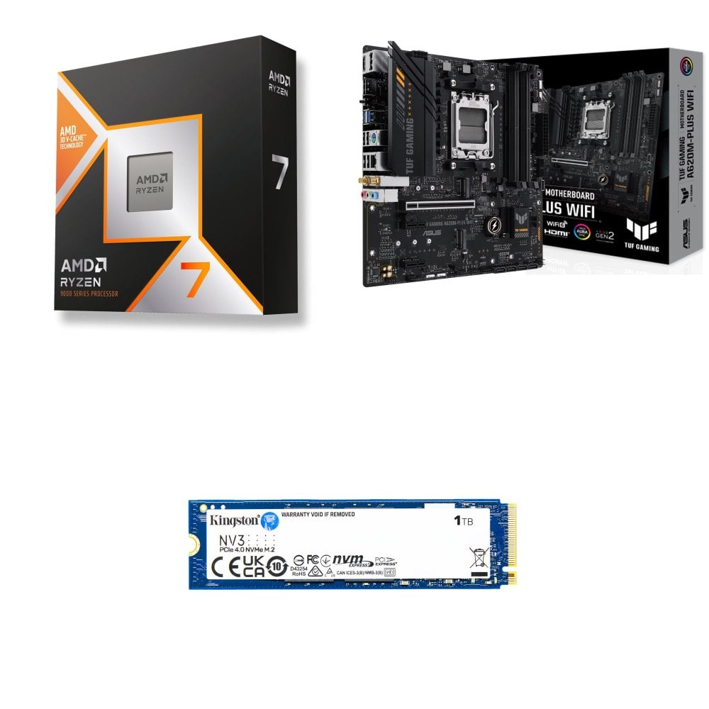 ☆裝機配★ AMD R7 9850X3D+華碩 TUF GAMING A620M-PLUS WIFI MATX主機板+金士頓 NV3 1TB M.2 PCIe SSD