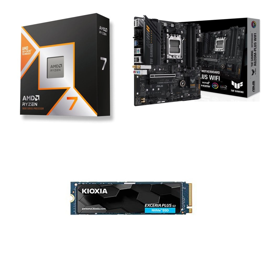 ☆裝機配★ AMD R7 9850X3D+華碩 TUF GAMING A620M-PLUS WIFI MATX主機板+鎧俠 EXCERIA PLUS G3 2TB PCIe Gen4x4 SSD