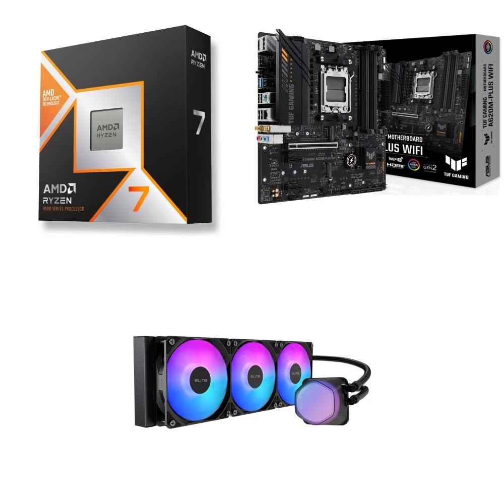 ☆裝機配★ AMD R7 9850X3D+華碩 TUF GAMING A620M-PLUS WIFI MATX主機板+酷碼 EliteLiquid 360 ARGB 水冷散熱器