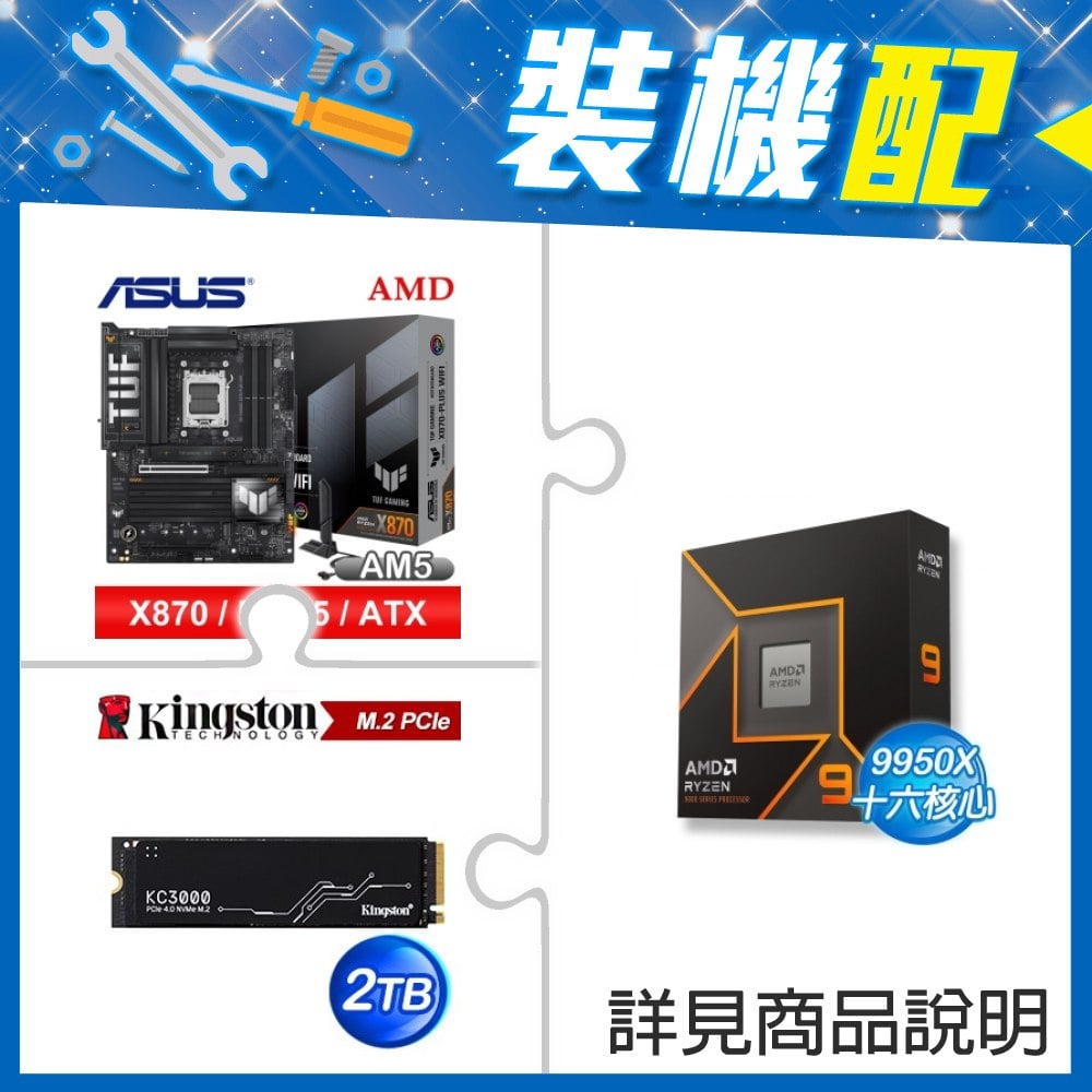 ☆裝機配★ AMD R9 9950X+華碩 TUF GAMING X870-PLUS WIFI ATX主機板+金士頓 KC3000 2TB PCIe 4.0 NVMe M.2 SSD
