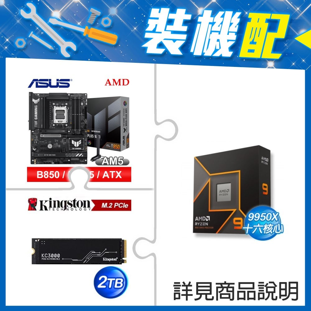 ☆裝機配★ AMD R9 9950X+華碩 TUF GAMING B850-PLUS WIFI ATX主機板+金士頓 KC3000 2TB PCIe 4.0 NVMe M.2 SSD