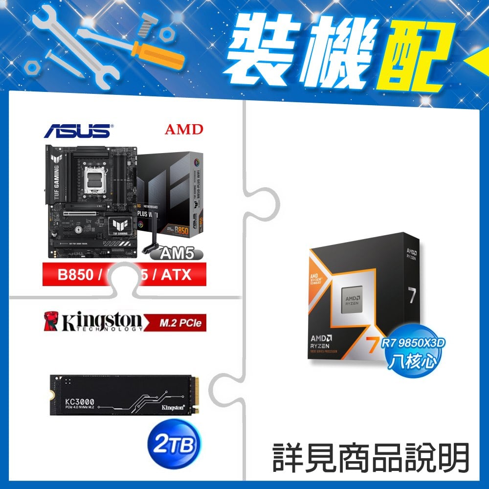 ☆裝機配★ AMD R7 9850X3D+華碩 TUF GAMING B850-PLUS WIFI ATX主機板+金士頓 KC3000 2TB PCIe 4.0 NVMe M.2 SSD