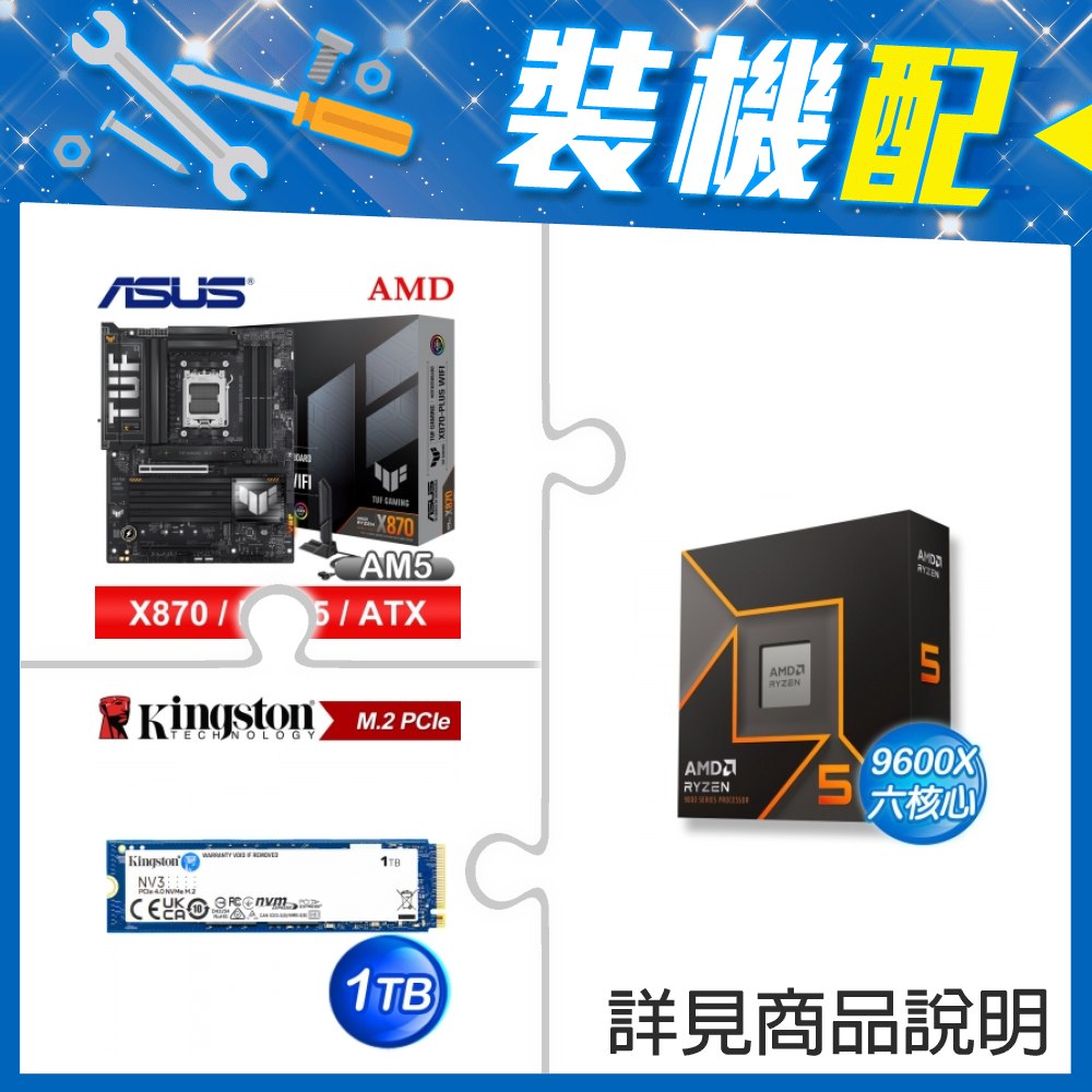 ☆裝機配★ AMD R5 9600X+華碩 TUF GAMING X870-PLUS WIFI ATX主機板+金士頓 NV3 1TB M.2 PCIe SSD