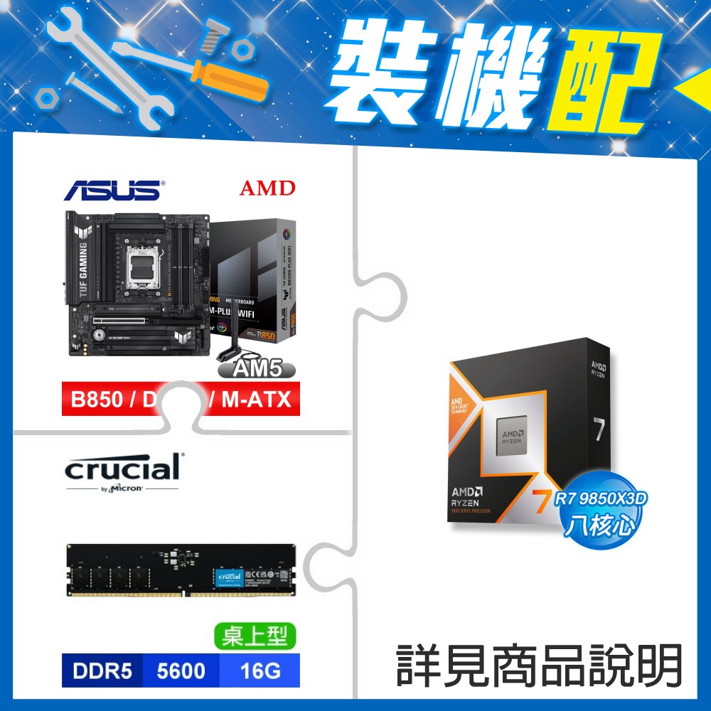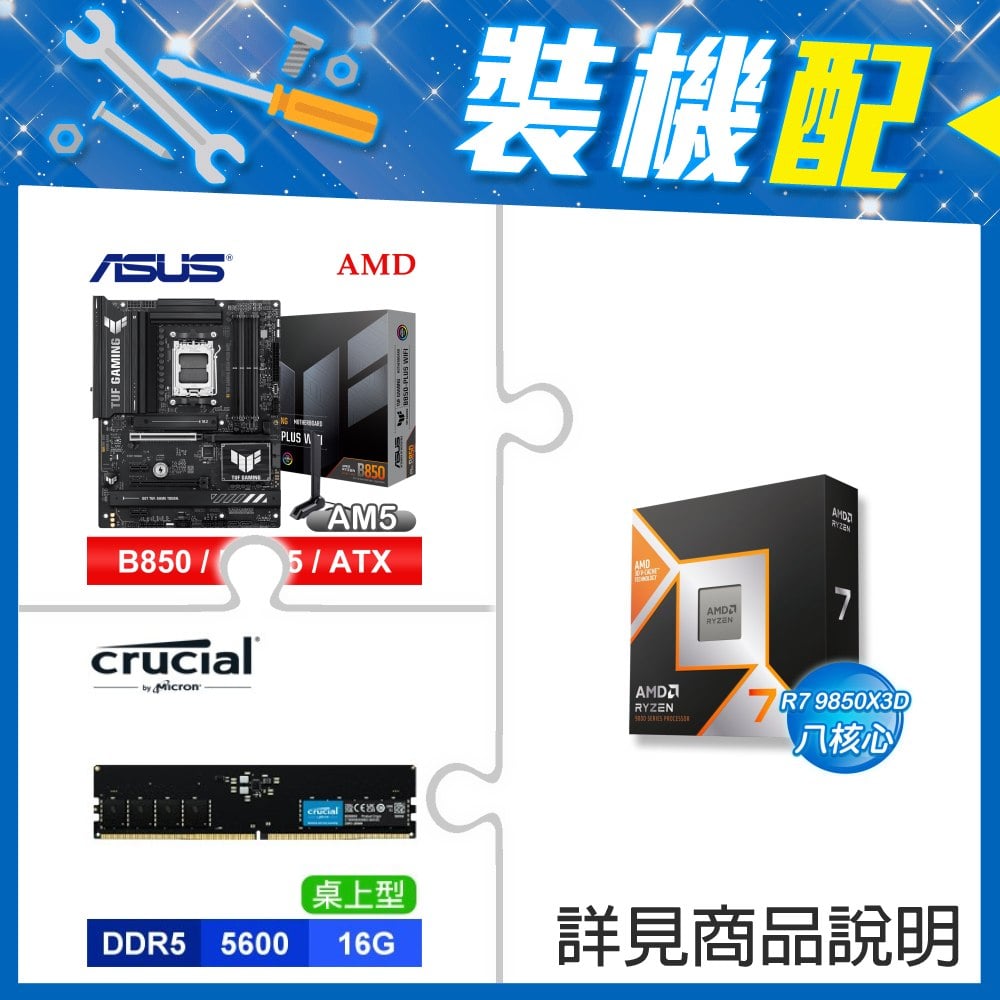 ☆裝機配★ AMD R7 9850X3D+華碩 TUF GAMING B850-PLUS WIFI ATX主機板+美光 DDR5-5600 16G 記憶體