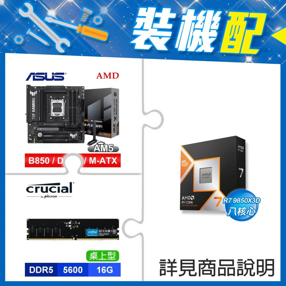 ☆裝機配★ AMD R7 9850X3D+華碩 TUF GAMING B850M-PLUS WIFI MATX主機板+美光 DDR5-5600 16G 記憶體