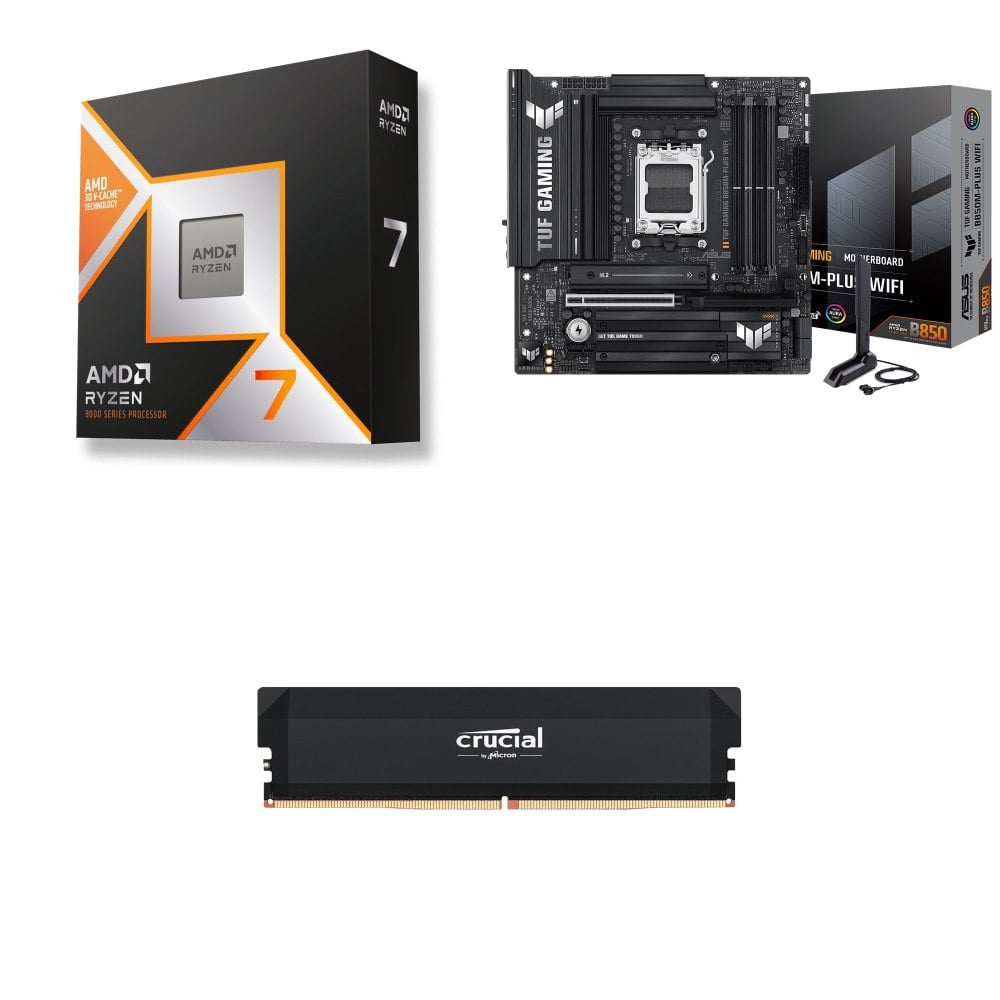 ☆裝機配★ AMD R7 9850X3D+華碩 TUF GAMING B850M-PLUS WIFI MATX主機板+美光 Crucial PRO DDR5-6000 16G 記憶體