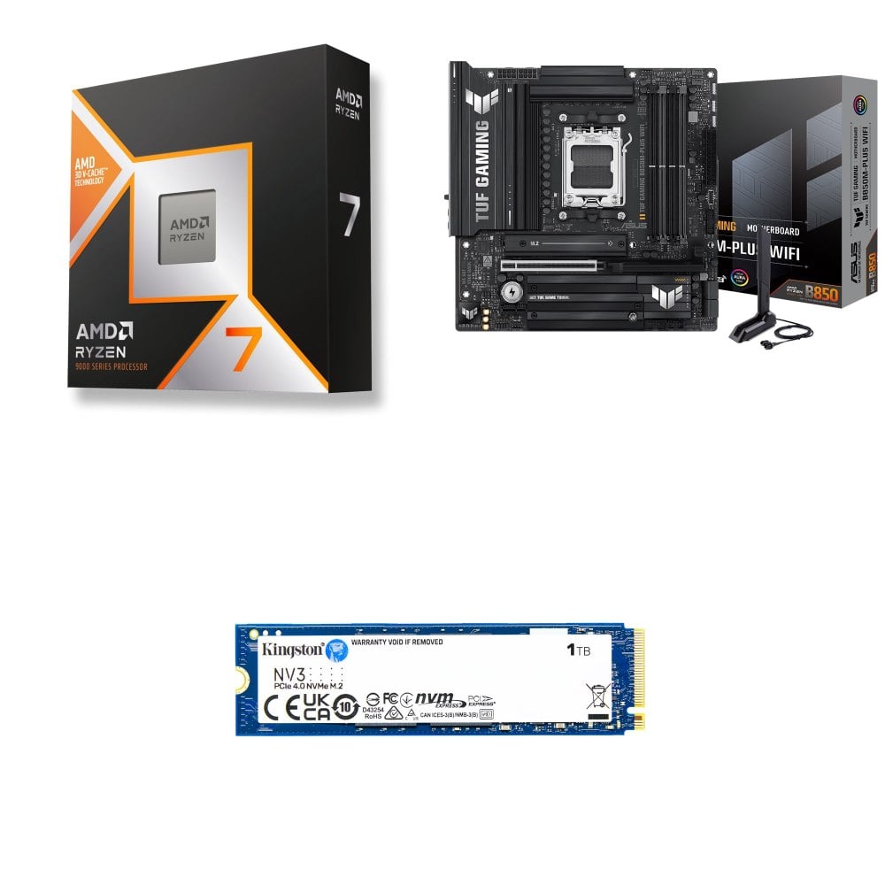 ☆裝機配★ AMD R7 9850X3D+華碩 TUF GAMING B850-PLUS WIFI ATX主機板+金士頓 NV3 1TB M.2 PCIe SSD