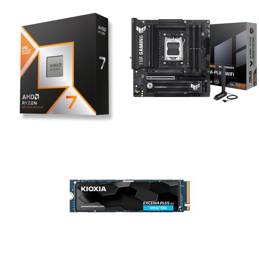 ☆裝機配★ AMD R7 9850X3D+華碩 TUF GAMING B850-PLUS WIFI ATX主機板+鎧俠 EXCERIA PLUS G3 1TB PCIe Gen4x4 SSD