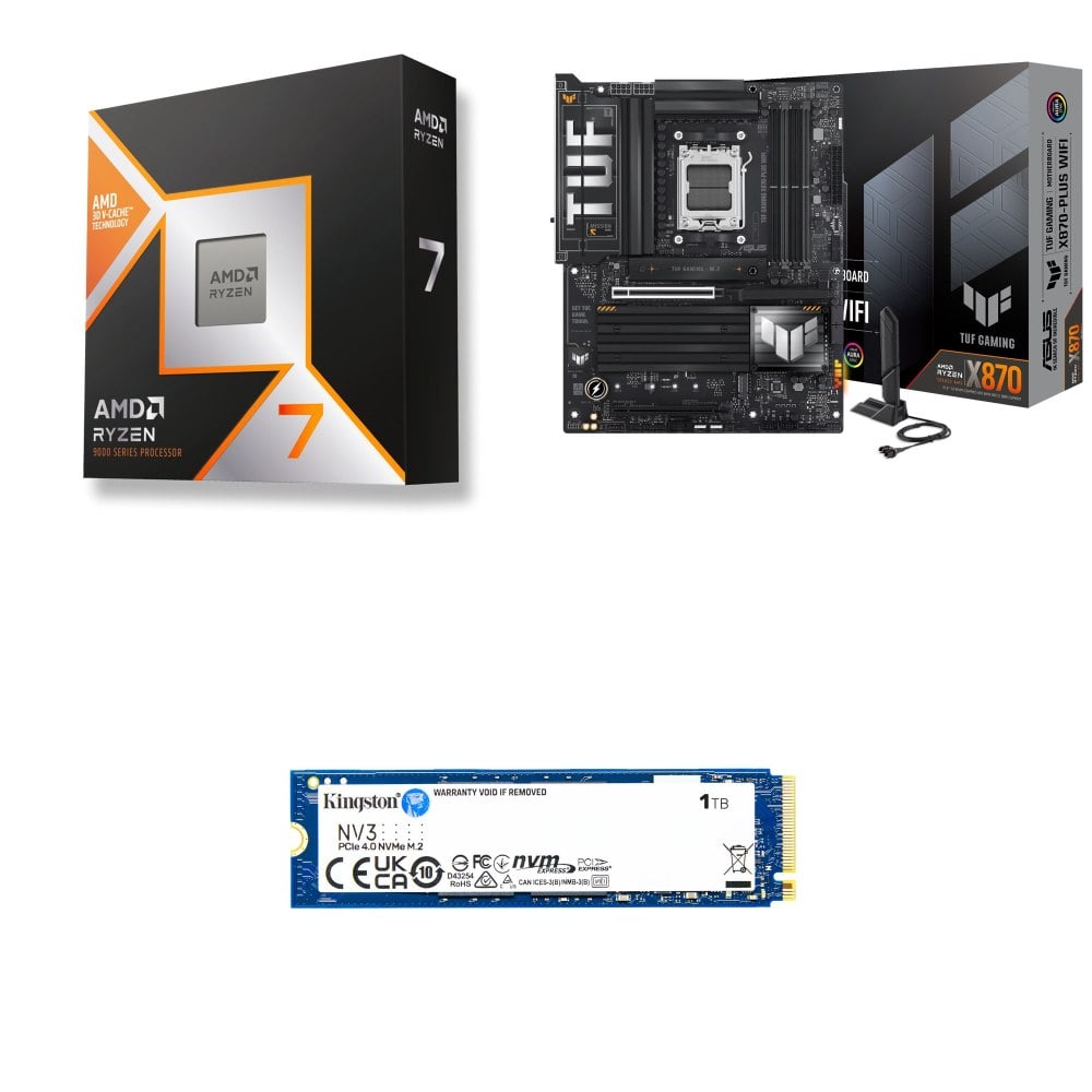 ☆裝機配★ AMD R7 9850X3D+華碩 TUF GAMING X870-PLUS WIFI ATX主機板+金士頓 NV3 1TB M.2 PCIe SSD