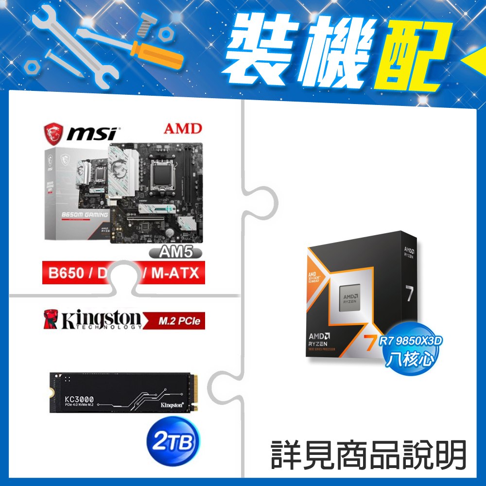 ☆裝機配★ AMD R7 9850X3D+微星 B650M GAMING WIFI M-ATX主機板+金士頓 KC3000 2TB PCIe 4.0 NVMe M.2 SSD