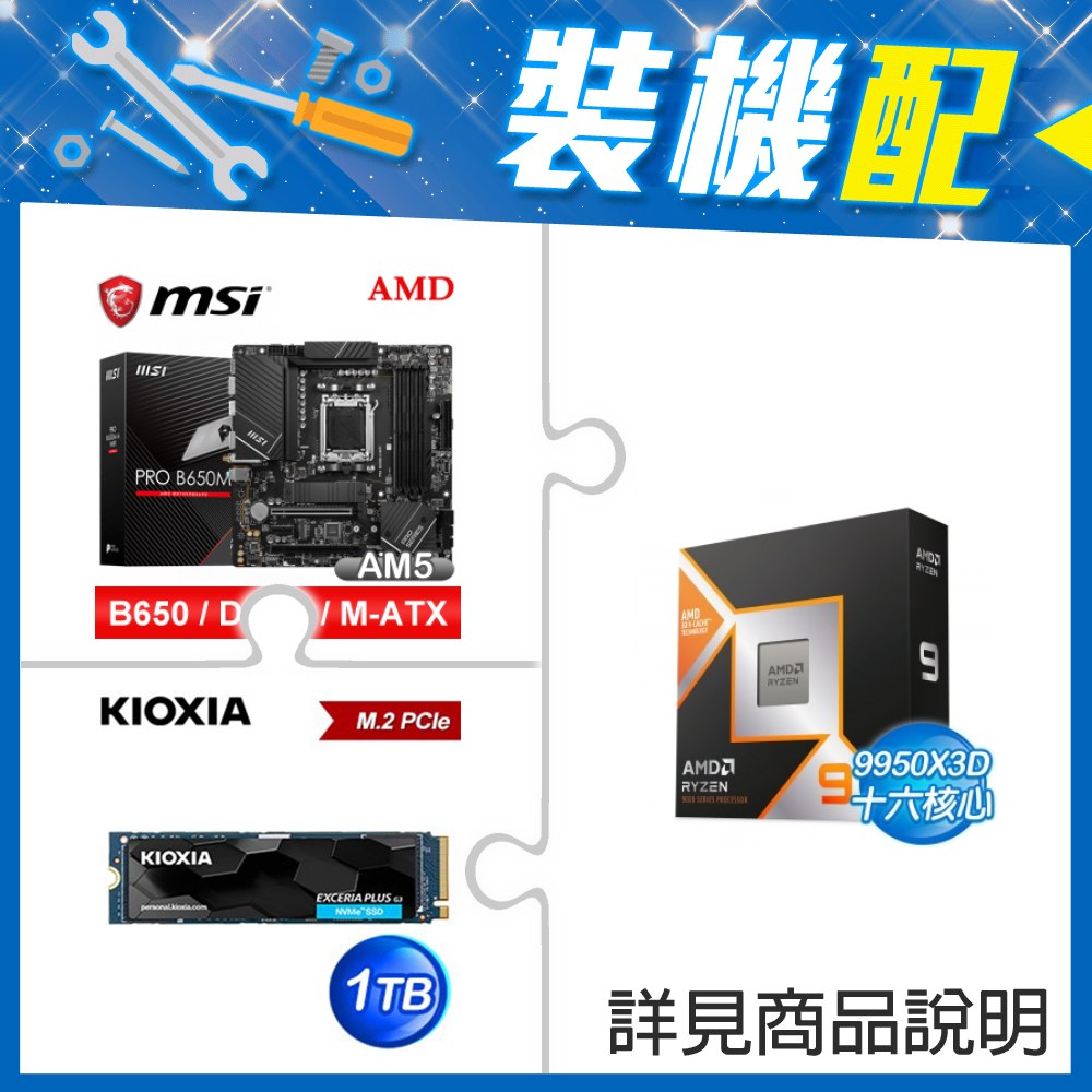 ☆裝機配★ AMD R9 9950X3D+微星 PRO B650M-A WIFI D5 M-ATX主機板+鎧俠 EXCERIA PLUS G3 1TB PCIe Gen4x4 SSD