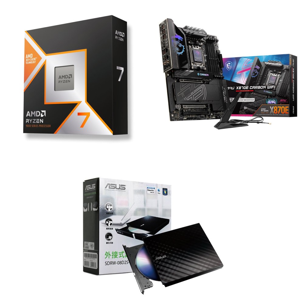 ☆裝機配★ AMD R7 9850X3D+微星 MPG X870E CARBON WIFI ATX主機板+華碩 SDRW-08D2S-U 外接式燒錄機《黑》