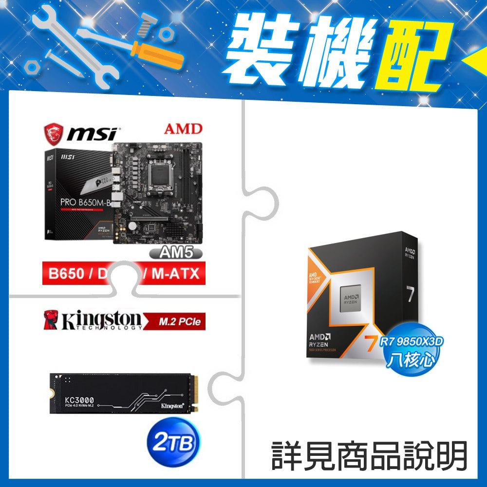☆裝機配★ AMD R7 9850X3D+微星 PRO B650M-B M-ATX主機板+金士頓 KC3000 2TB PCIe 4.0 NVMe M.2 SSD