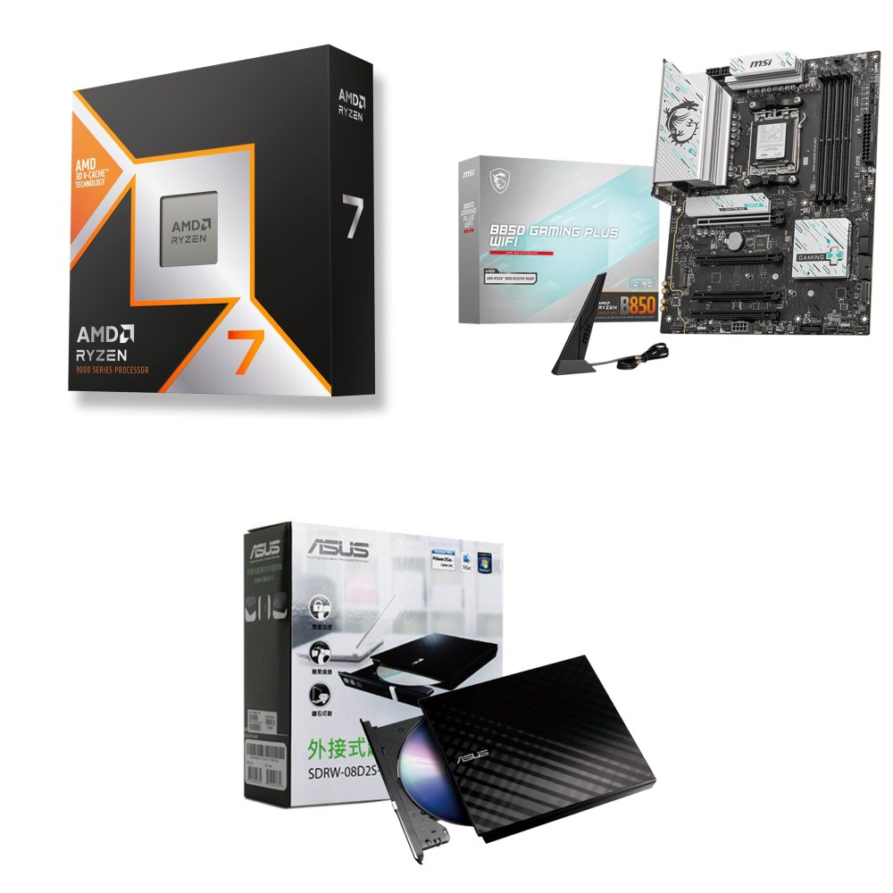 ☆裝機配★ AMD R7 9850X3D+微星 B850 GAMING PLUS WIFI ATX主機板+華碩 SDRW-08D2S-U 外接式燒錄機《黑》