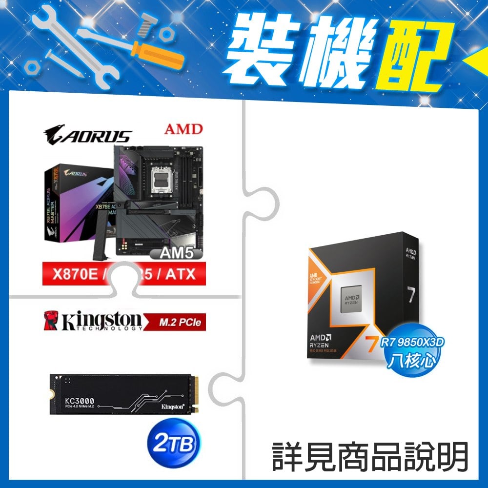 ☆裝機配★ AMD R7 9850X3D+技嘉 X870E AORUS MASTER ATX主機板+金士頓 KC3000 2TB PCIe 4.0 NVMe M.2 SSD
