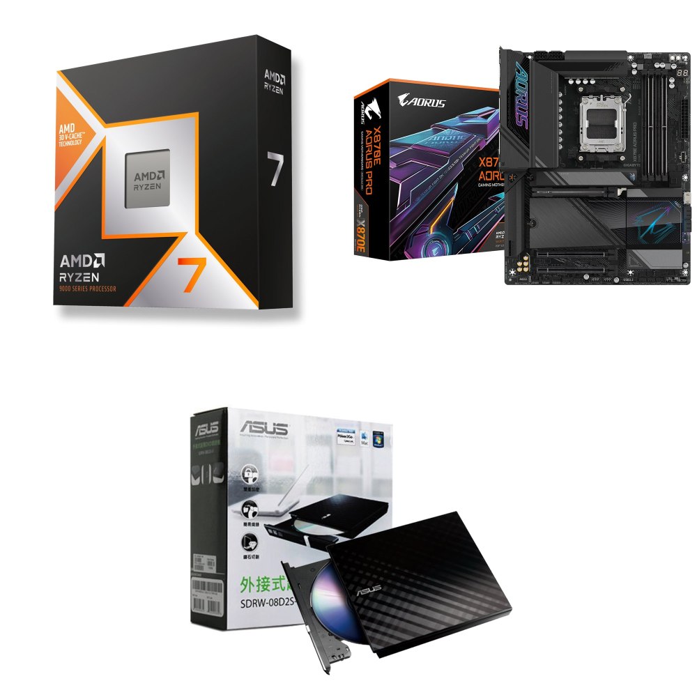 ☆裝機配★ AMD R7 9700X+技嘉 X870E AORUS PRO ATX主機板+華碩 SDRW-08D2S-U 外接式燒錄機《黑》
