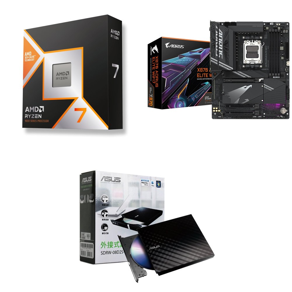 ☆裝機配★ AMD R7 9850X3D+技嘉 X870 AORUS ELITE WIFI7 ATX主機板+華碩 SDRW-08D2S-U 外接式燒錄機《黑》