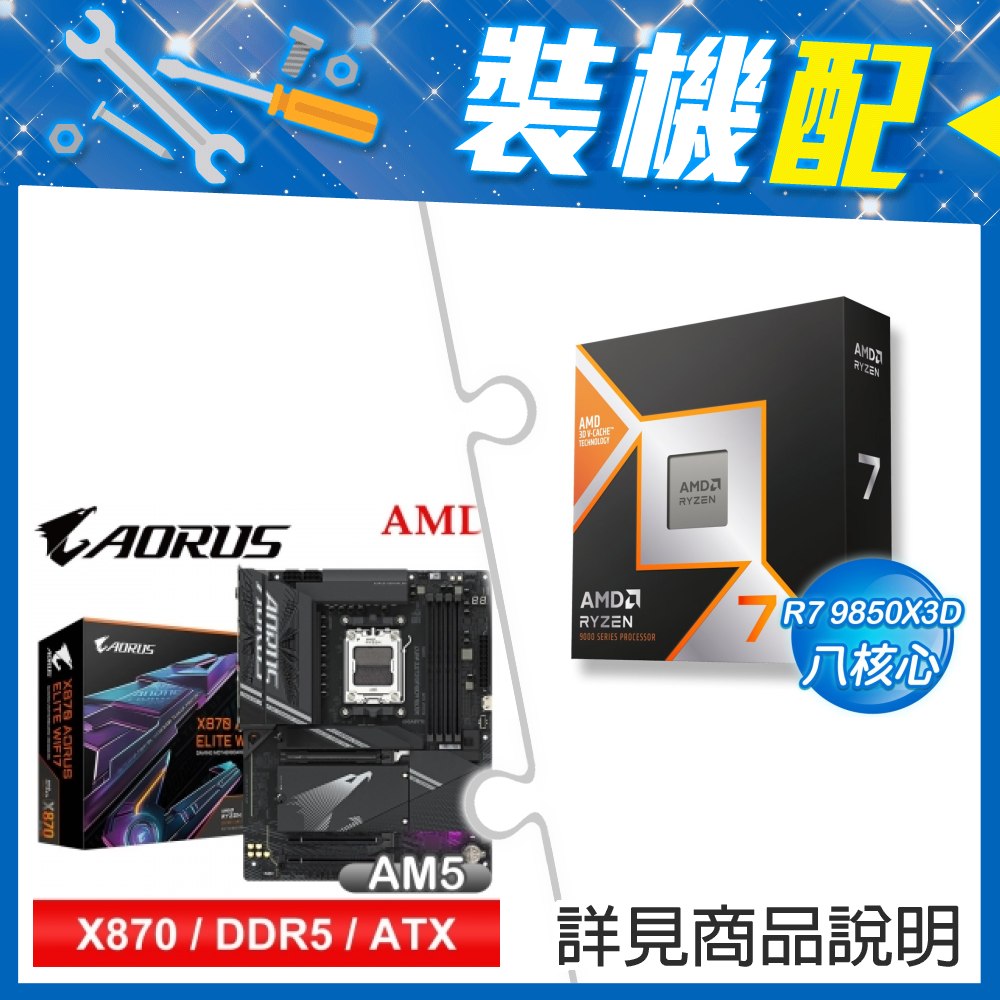 ☆裝機配★ AMD R7 9850X3D+技嘉 X870 AORUS ELITE WIFI7 ATX主機板
