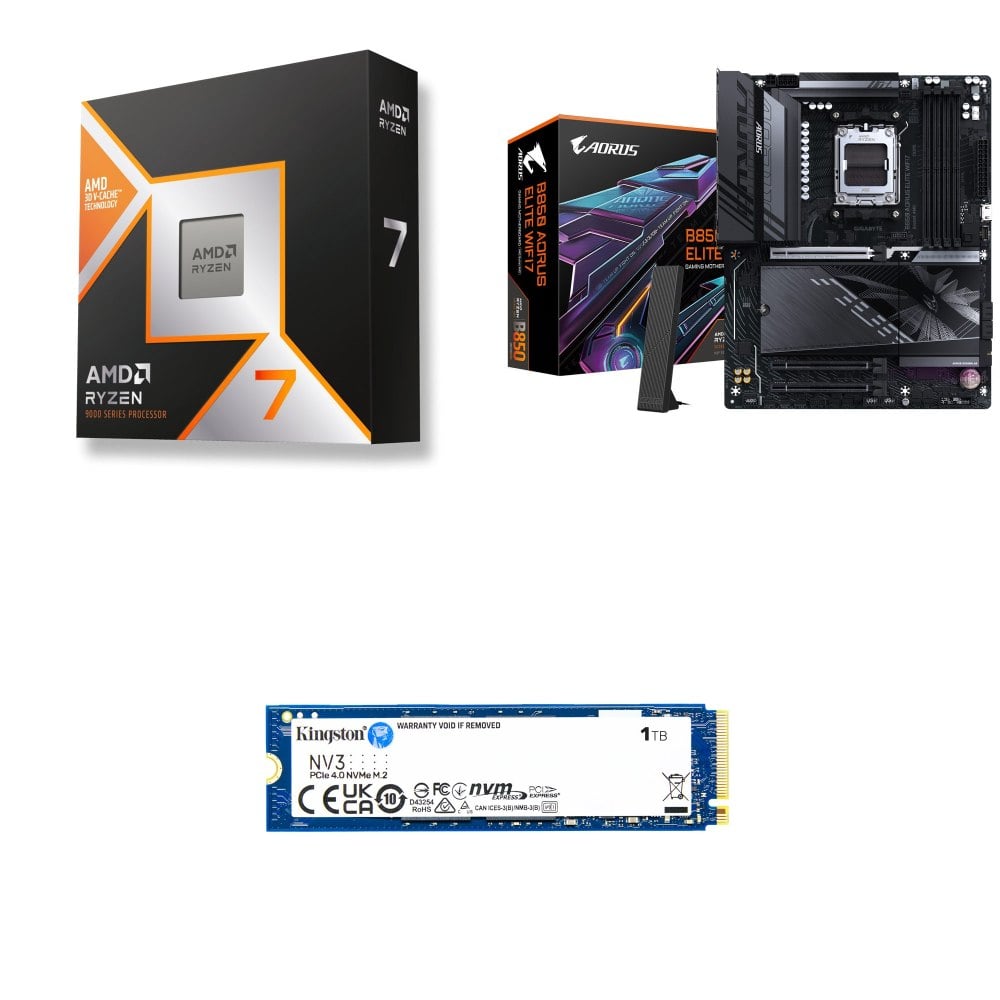 ☆裝機配★ AMD R7 9700X+技嘉 B850 AORUS ELITE WIFI7 ATX主機板+金士頓 NV3 1TB M.2 PCIe SSD