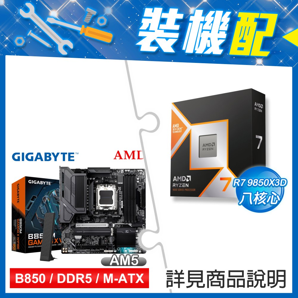 ☆裝機配★ AMD R7 9850X3D+技嘉 B850M GAMING X WIFI6E MATX主機板