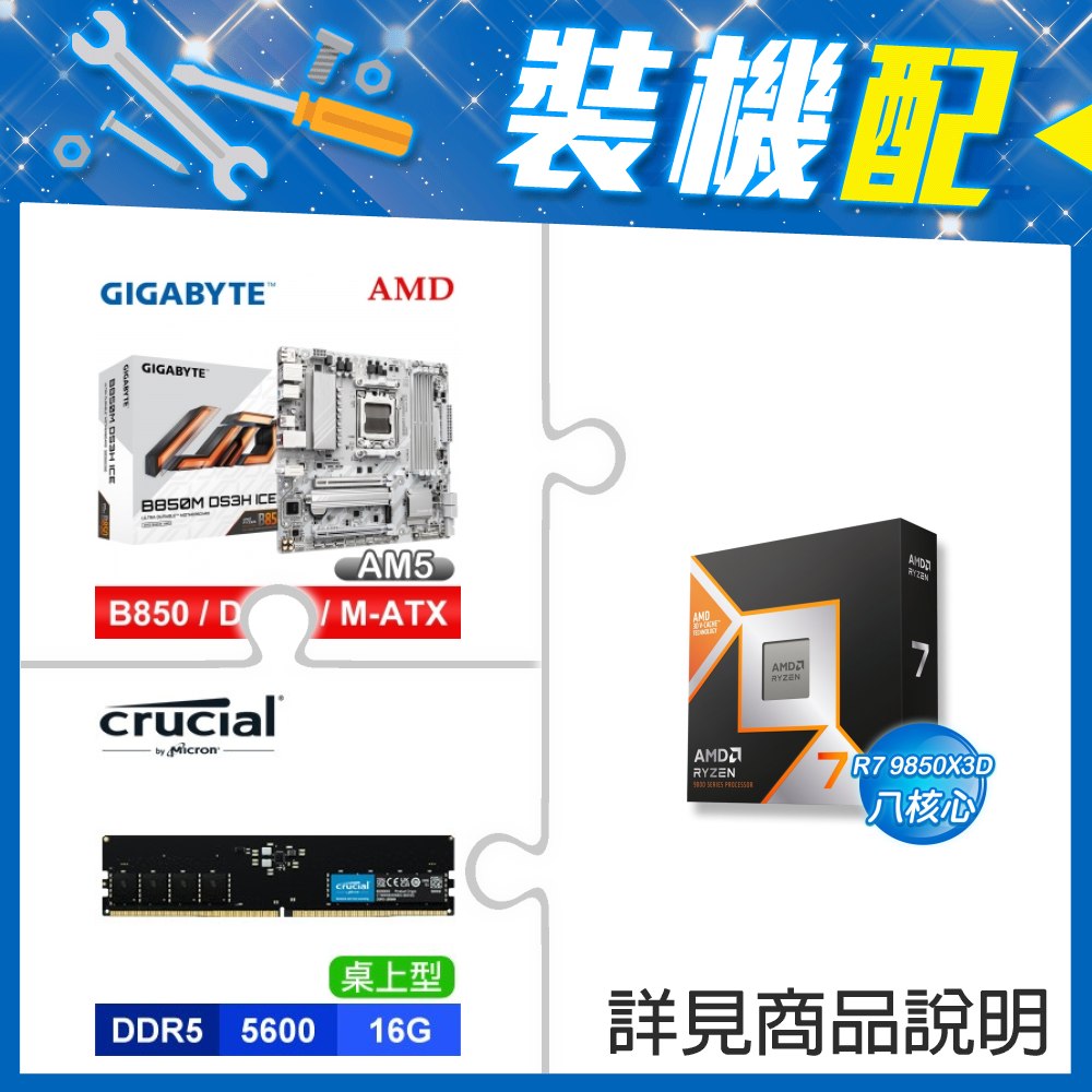 ☆裝機配★ AMD R7 9850X3D+技嘉 B850M DS3H MATX主機板+美光 DDR5-5600 16G 記憶體