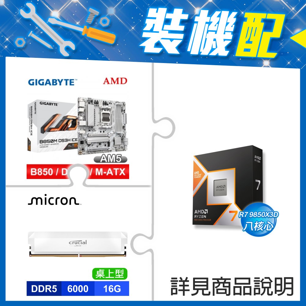 ☆裝機配★ AMD R7 9850X3D+技嘉 B850M DS3H ICE M-ATX主機板+美光 DDR5-5600 16G 記憶體