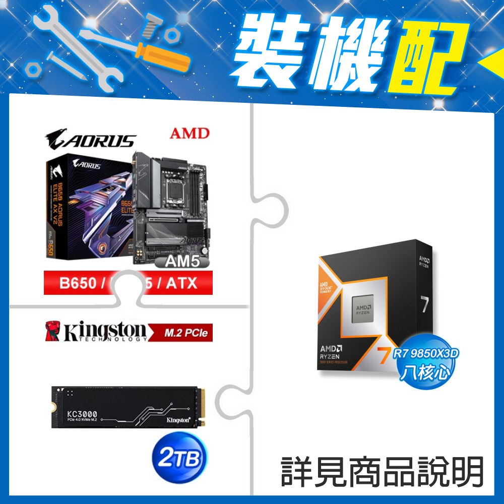 ☆裝機配★ AMD R7 9850X3D+技嘉 B650 AORUS ELITE AX V2 D5 ATX主機板+金士頓 KC3000 2TB PCIe 4.0 NVMe M.2 SSD