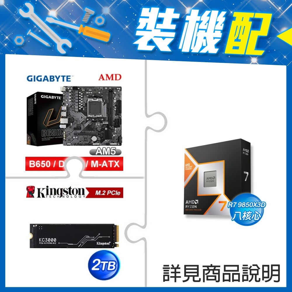 ☆裝機配★ AMD R7 9850X3D+技嘉 B650M H MATX主機板+金士頓 KC3000 2TB PCIe 4.0 NVMe M.2 SSD