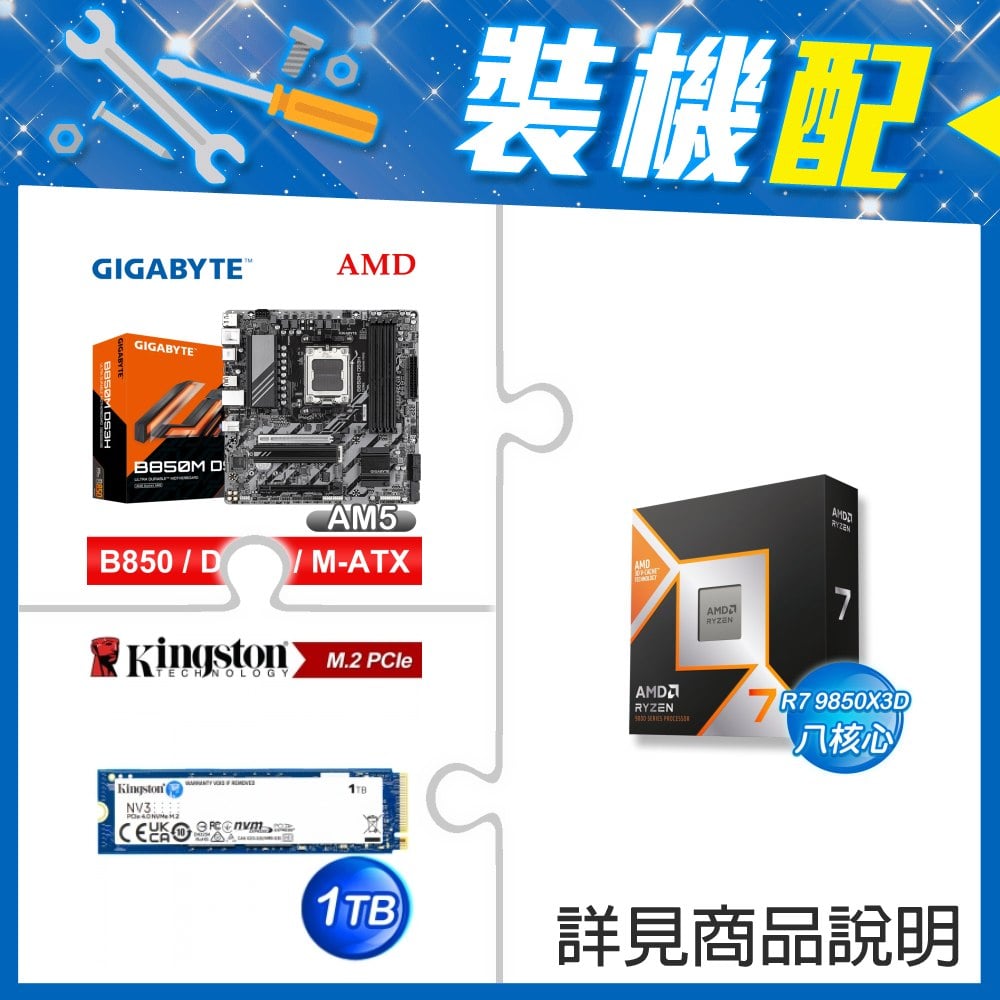 ☆裝機配★ AMD R7 9850X3D+技嘉 B850M DS3H MATX主機板+金士頓 NV3 1TB M.2 PCIe SSD