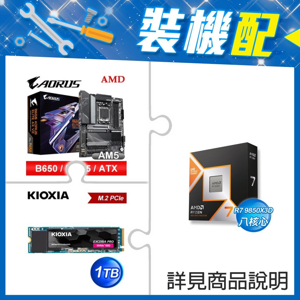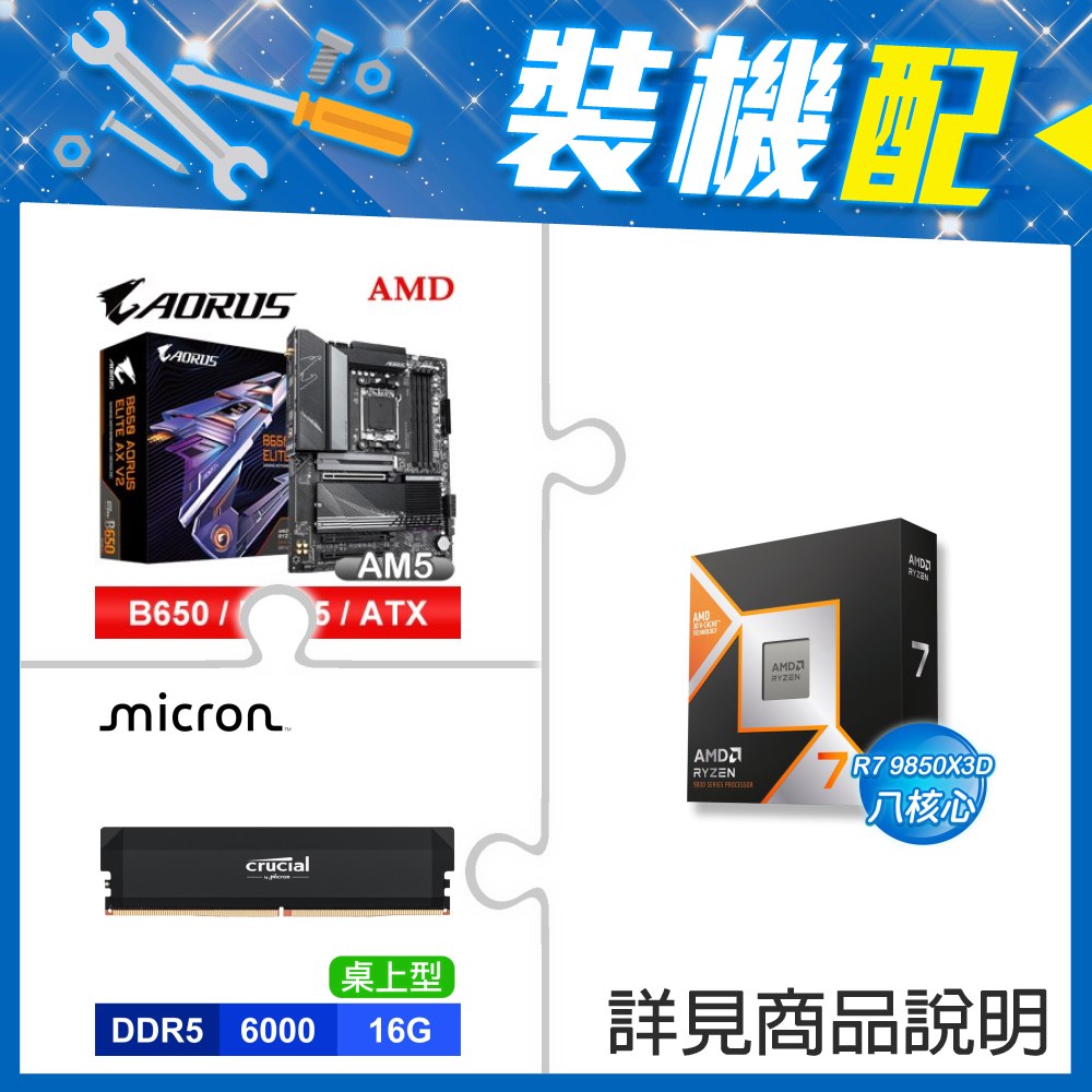 ☆裝機配★ AMD R7 9850X3D+技嘉 B650 AORUS ELITE AX V2 D5 ATX主機板+美光 Crucial PRO DDR5-6000 16G 記憶體