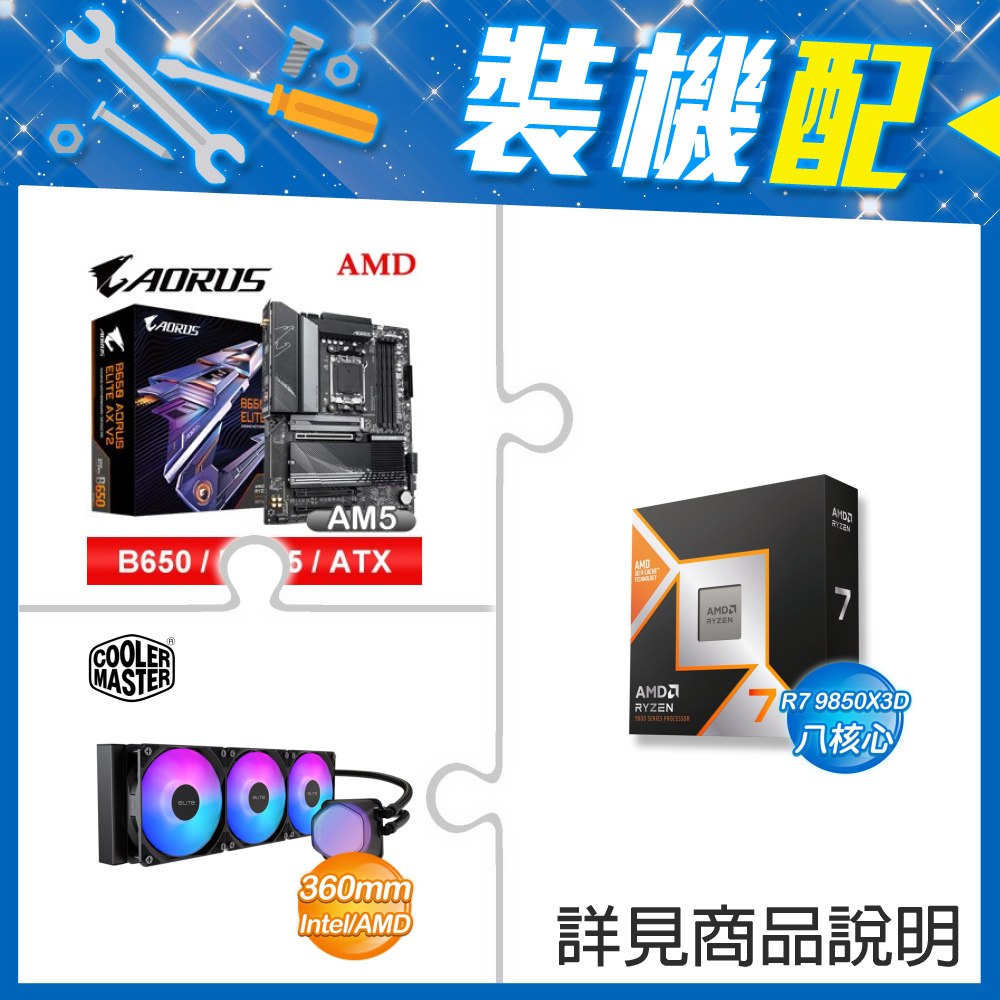 ☆裝機配★ AMD R7 9850X3D+技嘉 B650 AORUS ELITE AX V2 D5 ATX主機板+酷碼 EliteLiquid 360 ARGB 水冷散熱器