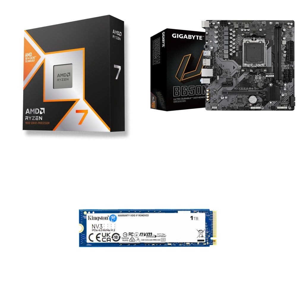 ☆裝機配★ AMD R7 9800X3D+技嘉 B650M H MATX主機板+金士頓 NV3 1TB M.2 PCIe SSD