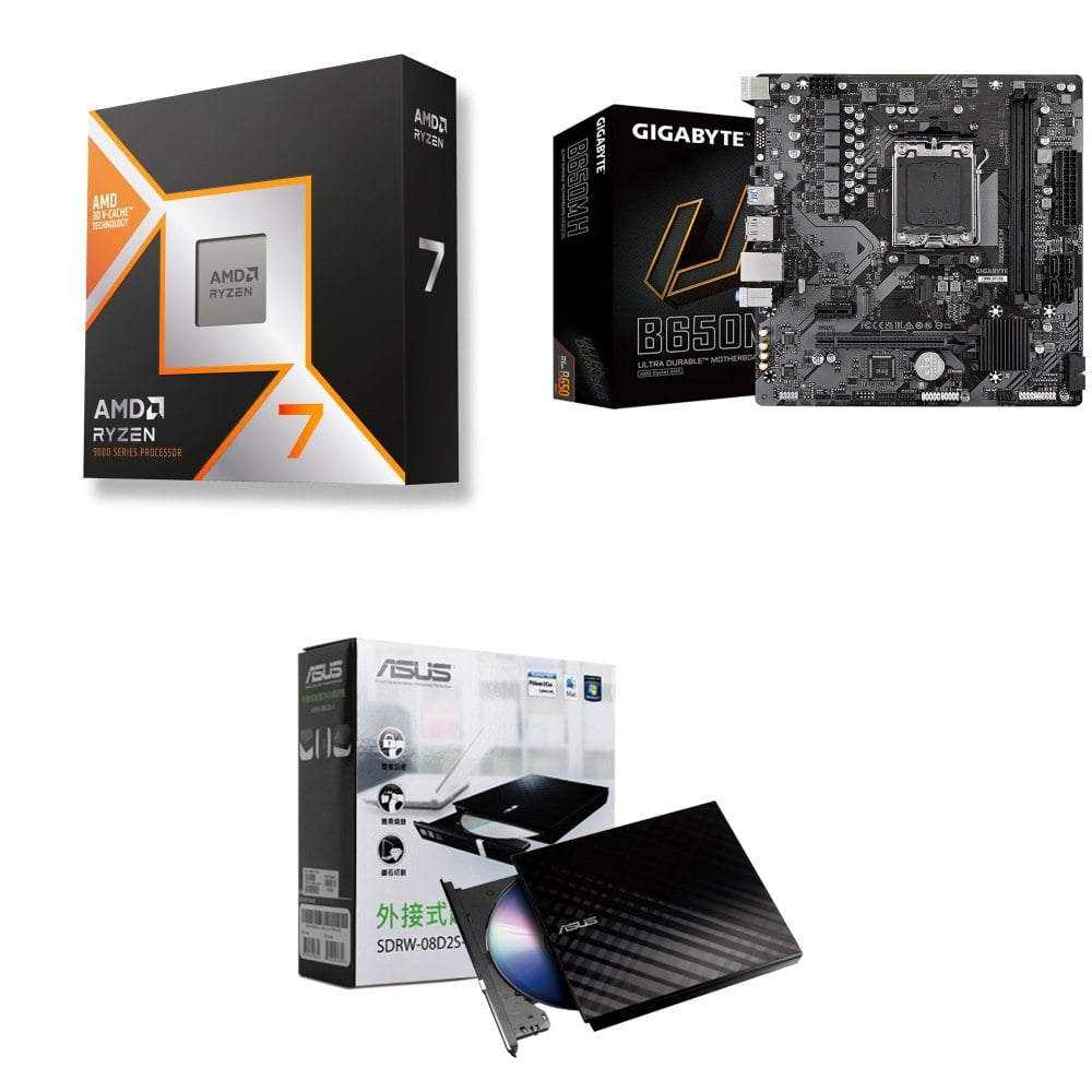 ☆裝機配★ AMD R7 9850X3D+技嘉 B650M H MATX主機板+華碩 SDRW-08D2S-U 外接式燒錄機《黑》